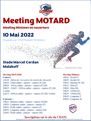 https://www.usmm.fr/admin/zone/design/ 20h25 – 21h05 : 1000 m cadets - juniors – seniors (F) (M) 4 séries
